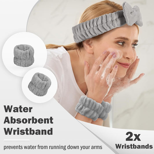 9 Pack Spa Headband Wristband Set, Bow Hair Band for Washing Face Facial Makeup